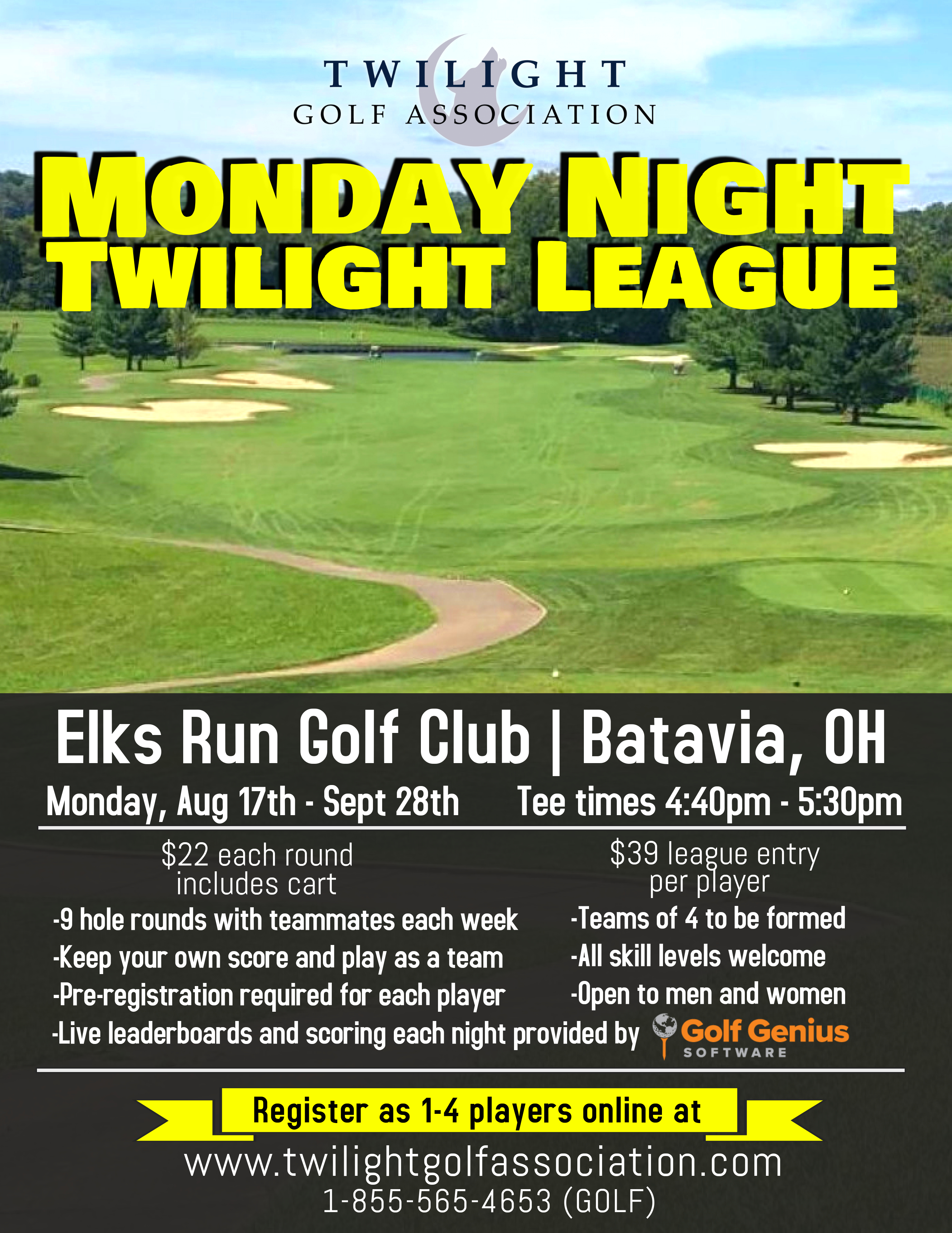 For more information, e-mail play@twilightgolfassociation.com or call 1-855-565-4653 (GOLF).